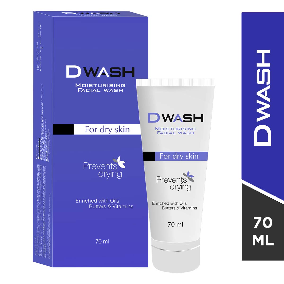 D wash moisturizing facial wash is a creamy face wash for dry skin.It serves as both cleanser and moisturizer. It provides deep cleansing to skin without losing skin's natural moisture. Enriched with nourishing ingredients like shea butter, kokum butter and glycerin. Helps in removing impurities and keeping skin hydrated throughout the day. It improves skin health as it is enriched with essential oils.
