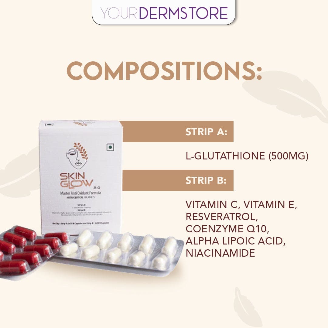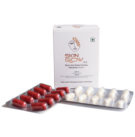 Skin Glow 2.O Capsule is a distinctive combination of a powerful antioxidant that operates on a small scale to combat the effects of aging and maintain a flawless, radiant, and nourished complexion.