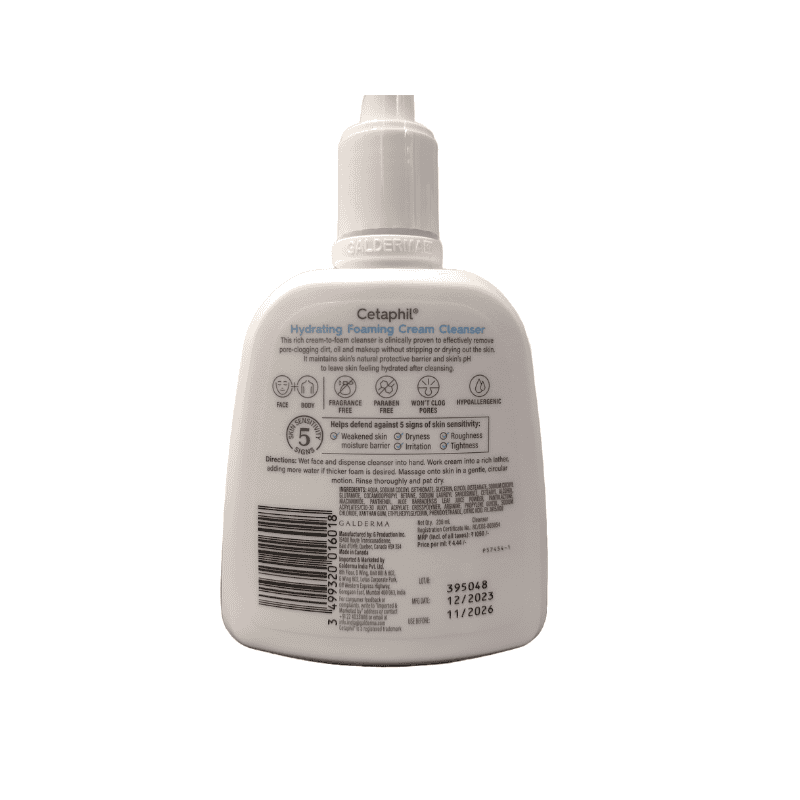 Cetaphil Hydrating Foaming Cream Cleanser is specifically designed for dry and sensitive skin. This foamy face wash is formulated as a mild yet efficient solution that cleanses without depleting the natural moisture in your skin. Its creamy foam texture makes removing makeup residue, grime, and pollutants easy, leaving your skin feeling nourished and renewed.