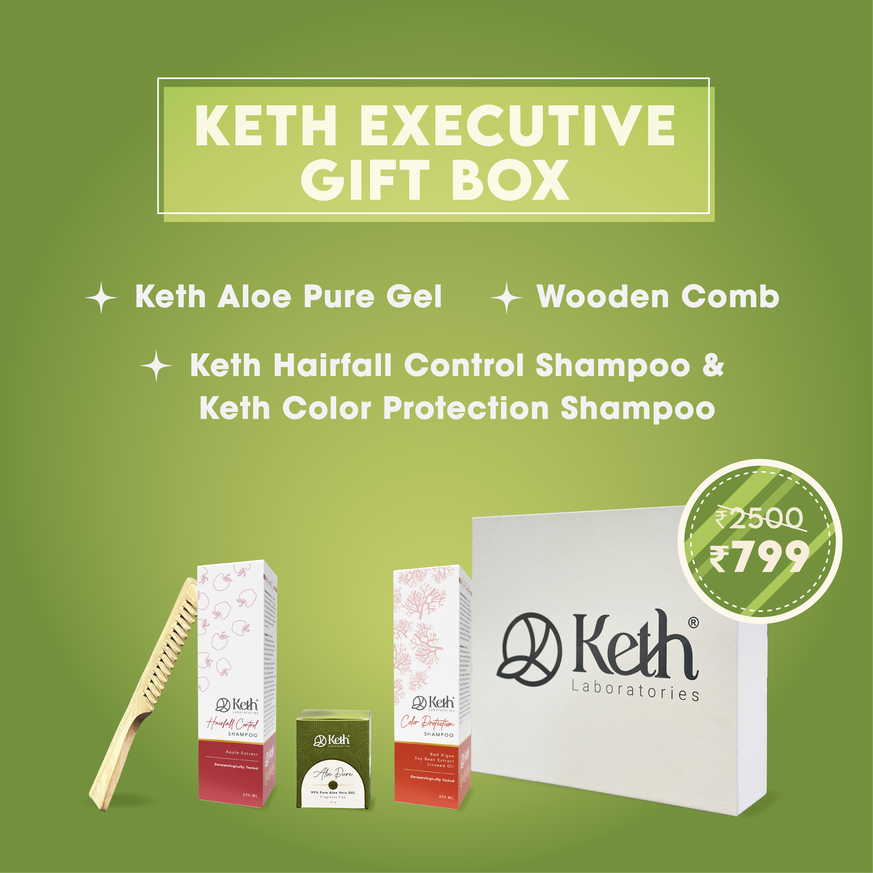 This combo provides hair fall control, color protection, soothing aloe care, and a wooden comb to healthy, vibrant hair.