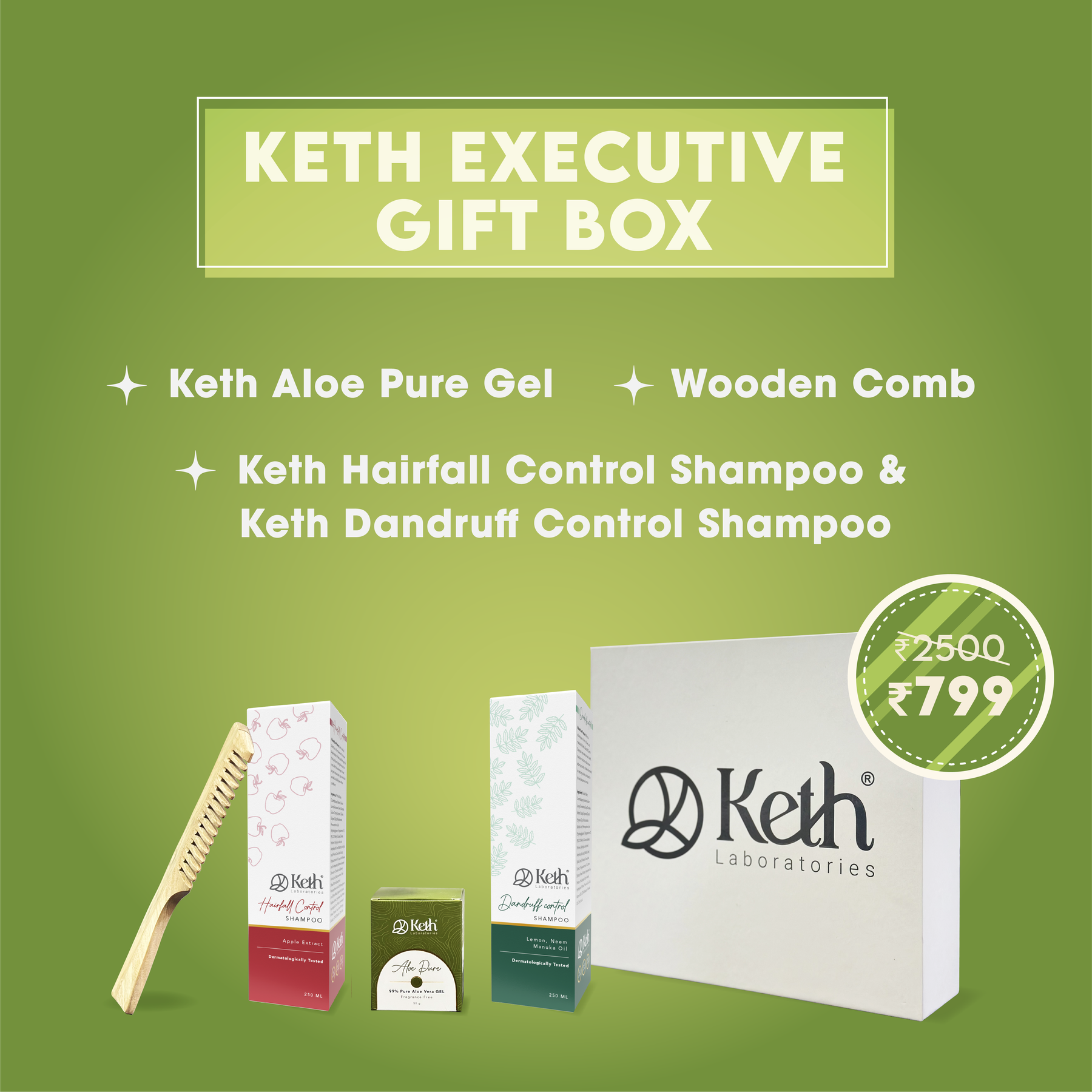 This combo offers dandruff relief, hair fall control, soothing aloe, and a wooden comb for a comprehensive approach to beautiful, well-maintained hair.