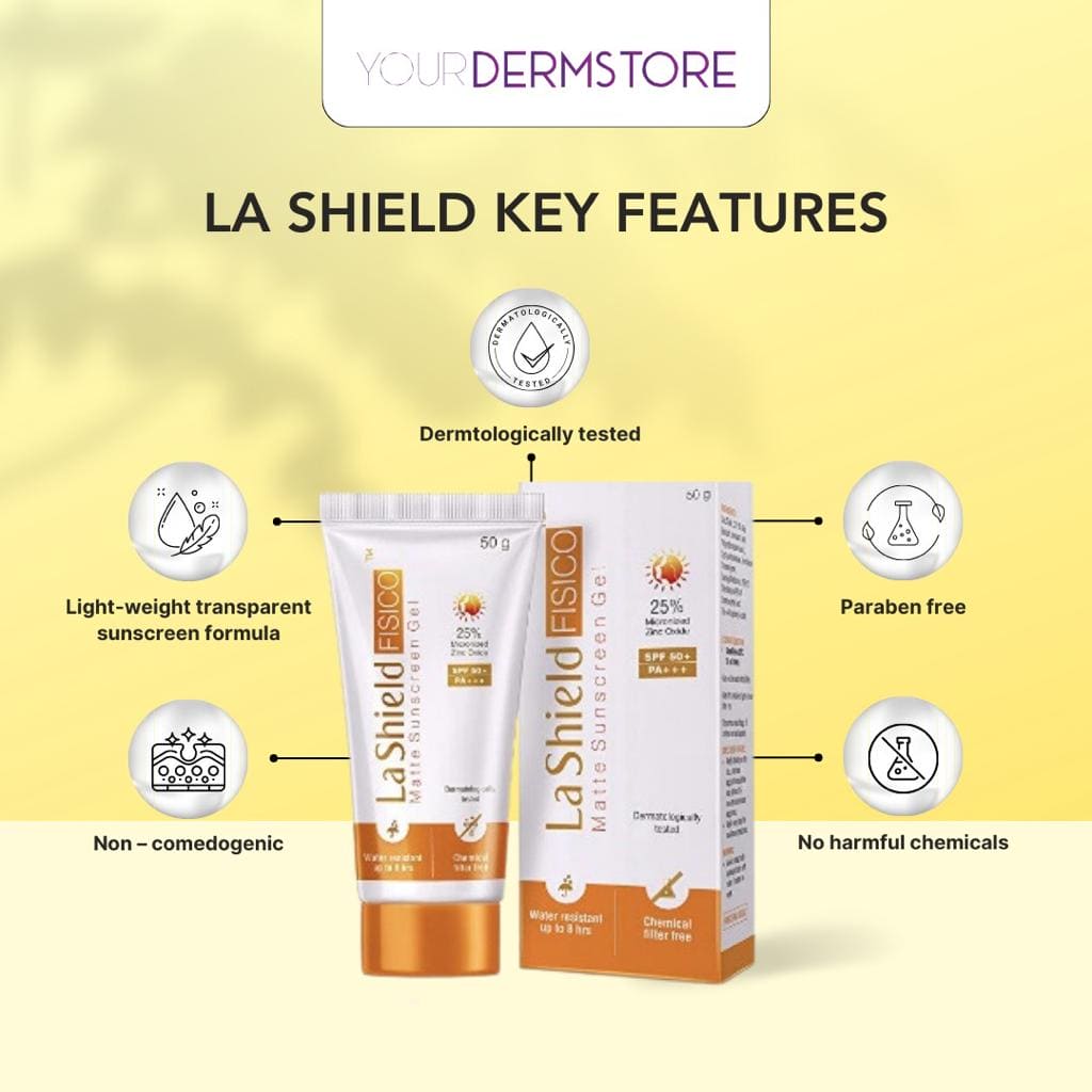 LA Shield Sunscreen is a High-quality Sunscreen that protects your skin from UVA and UVB Rays. LA Shield Fisico Matte SPF 50 Sunscreen Gel incorporates Helioplex technology, the most recent innovation in UV protection, as confirmed by dermatological testing. LA Shield Matte Sunscreen provides superior balanced broad-spectrum protection against skin-aging UVA and burning UVB rays and combines it with dry touch technology for an ultra-light, non-shiny finish.LA Shield Fisico Sunscreen lightweight sunblock has a light, fresh scent and is gentle enough even for sensitive skin.