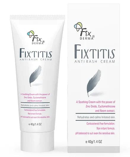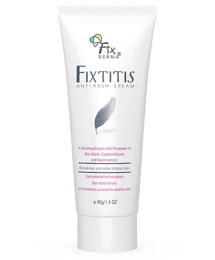 The Fixtitis Anti-Rash cream provides a reliable solution for skin allergies in children, ranging from eczema to dermatitis. It helps in soothing rashes caused by diapers. It gives a gentle but effective remedy, fostering healing and comfort for sensitive skin. Its composition consists of Zinc Oxide, Cyclomethicone, Liquid Paraffin, and Neem extract, synergistically working to soothe irritated regions and promote skin restoration. It is suitable for all skin types.
