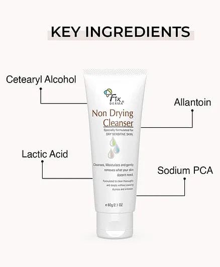 Fix derma non-drying cleanser is your gentle yet powerful skincare solution. Designed with care to cleanse, hydrate, and revitalize without drying out your skin’s natural oils. This non-drying face wash offers a unique combination of key ingredients to keep your skin looking healthy and radiant.